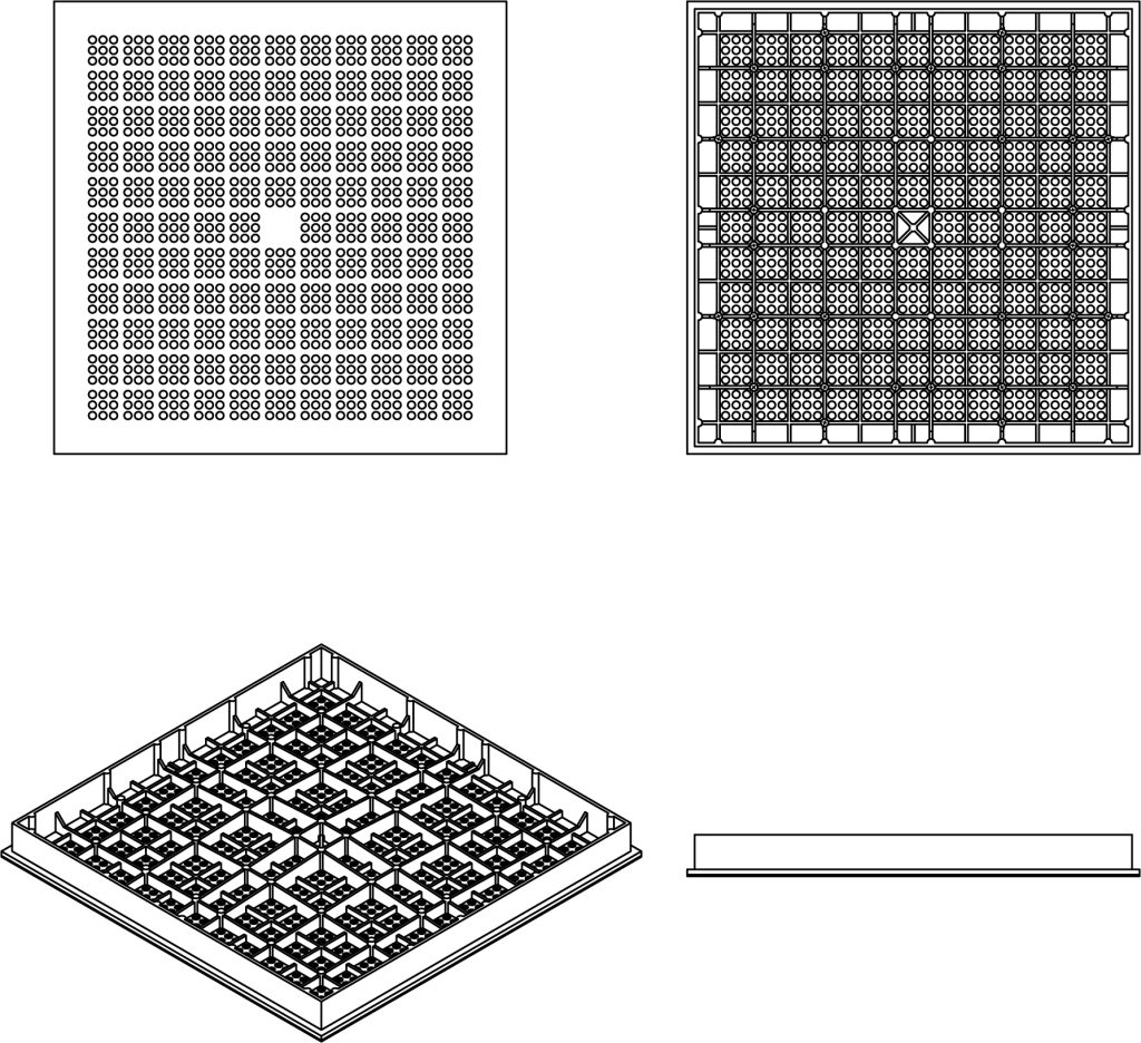Yearlead aluminum perforated panel with 1,080 chamfered holes and nominal air open ratios from 20%~30% are designed to meet specific air flow requirements for both data centers and clean rooms. High strength and pure die-cast aluminum as the base material, die-casted by a large-scale hydraulic press and precision machined, panel surface could be epoxy-sprayed or nickel-chromium plated as requirement, factory applied covering with HPL or PVC. With excellent performance of light gloss, anti-corrosion, anti-wear and superior mechanic strength.